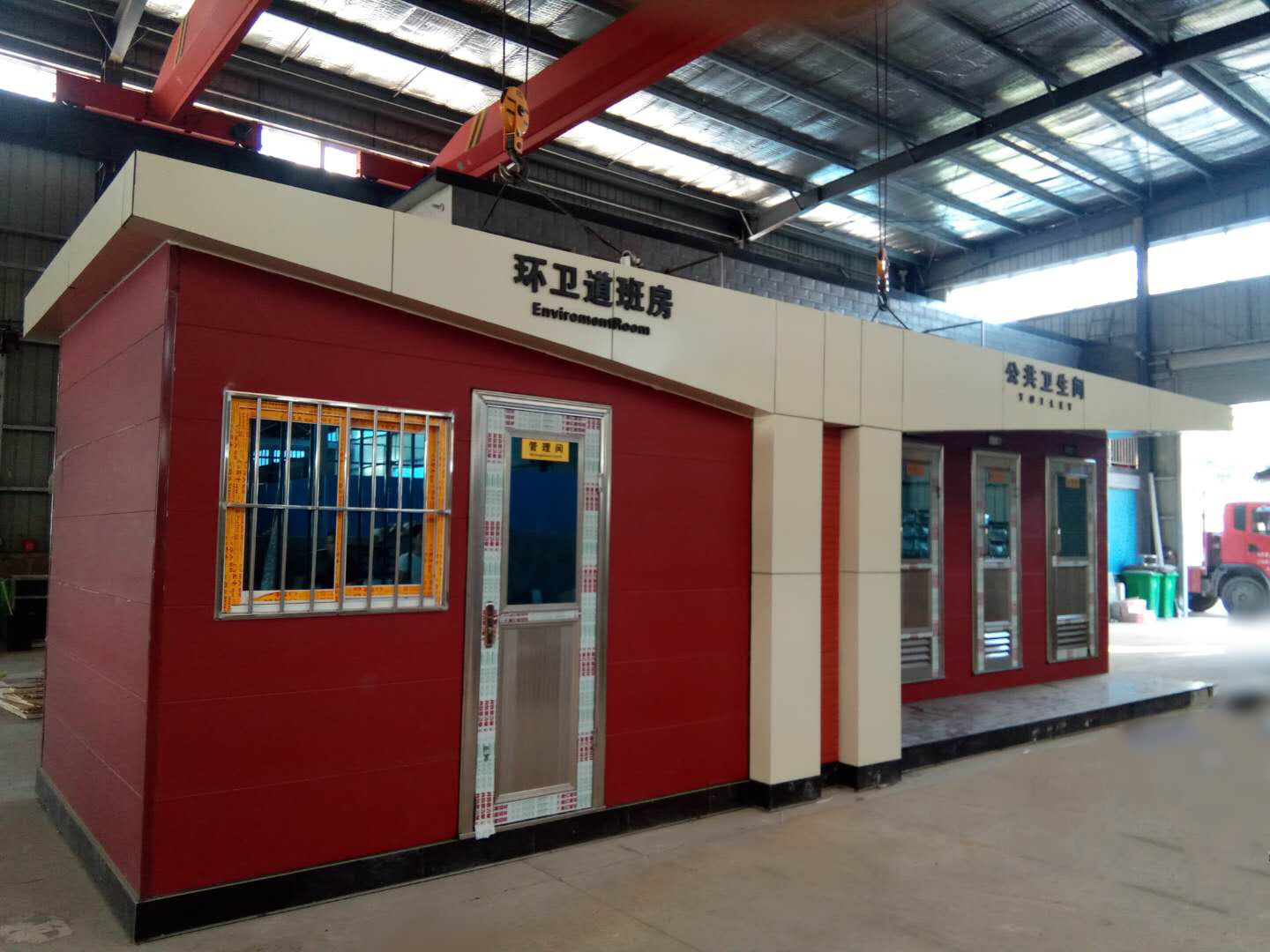 移動廁所簡介及制作方法:1、房體結構: 采用輕鋼龍骨結構,鋼材全部使用國家標準鍍鋅鋼材。根據房體的大小特選用國標方管(50-100)焊接而成。鍍鋅管厚度為2.8mm,方管經過徹底除銹后進行鍍鋅、防腐處理,處理后的結構使用壽命均在20年以上。這樣就會延長廁所使用壽命,使整座廁所的穩固性更強、更加結實耐用。2、墻體...
